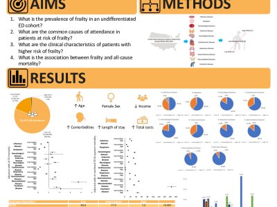 Background: Data are limited on whether the causes of Emergency Department (ED) attendance and clinical outcomes vary by frailty status. Methods: Using the Nationwide ED Sample, causes of attendance were stratified by Hospital Frailty Risk Score (HFRS). Logistic regression was used to determine adjusted odds ratios (aOR) and 95% confidence intervals (95% CI) of ED and overall mortality. Results: A total of 155,497,048 ED attendances were included, of which 125,809,960 (80.9%) had a low HFRS (<5), 27,205,257 (17.5%) had an intermediate HFRS (5-15) and 2,481,831 (1.6%) had a high HFRS (>15). The