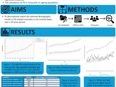 Introduction Parkinson’s disease (PD) is the most common neurodegenerative movement disorder and is associated with significant disability. The prevalence of PD is rising and the literature demonstrates potential sex and race disparities in patient outcomes. There is a paucity of data about the demographic trends in PD-related mortality in the United States (US). This descriptive study aimed to report the national demographic trends in PD-related mortality over a 20-year period. Methods From January 1999 to December 2020, the US Centers for Disease Control and Prevention Wide-Ranging Online