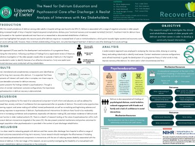 Introduction There is limited understanding of long-term delirium care after discharge from hospital for older people. A realist approach was used to investigate the contextual factors and mechanisms of care that influence recovery from delirium. Realist evaluation is fundamentally theory-driven. A preliminary programme theory was used as the foundation for theory testing and refinement, in order to develop the RecoverED intervention. Method Realist interviewing techniques were used to obtain real-world and lived experiences of delirium recovery and service use in the community for theory