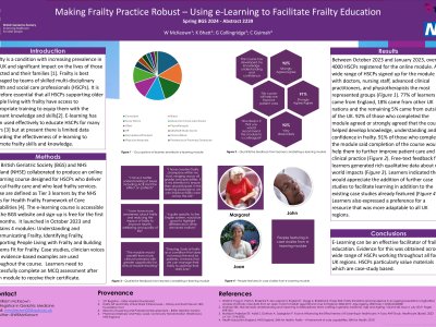Introduction Frailty is a condition with increasing prevalence in the UK and significantly impacts the lives of those affected and their families. Frailty is a condition best managed by teams of skilled multi-disciplinary health and social care professionals (HSCPs). It is therefore essential that all HSCPs working with older people living with frailty are equipped with the appropriate knowledge and attitudes to look after affected persons. Methods The British Geriatric Society (BGS) and NHS England (NHSE) collaborated to produce an online e-learning module to support HSCPs to provide frailty