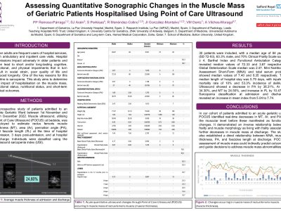 Introduction: One of the most important consequences of hospitalisation in older patients is sarcopenia. This study aims to determine the impact of hospitalisation on muscle mass, functional status, nutritional status, and short-term clinical outcomes. Methods: A prospective study of patients admitted to an Acute Geriatric Ward between 1st November and 30th December 2022. Muscle ultrasound, utilising Point of Care Ultrasound (POCUS) at the bedside, was employed to estimate rectus femoris muscle thickness (MT), area (Ar), pennation angle (PA), and fascicle length (FL) at the time of hospital