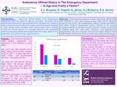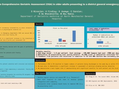 Introduction: Frailty is the concept of increasing vulnerability to minor stressors in the context of a reduction in physiological reserves (Clegg et Al. The Lancet 2013, Volume 381, pages 752-762). It affects 10% of people presenting to Emergency departments (ED) and around 30% of inpatients in acute medical units (NHS England and NHS Improvements. 2019). Implementing a CGA is known to result in a significant increase in your likelihood of being alive and in your own home at 6 months (Ellis et Al. BMJ 2013). Aims: To implement an ED in reach frailty service with the goal of performing a CGA