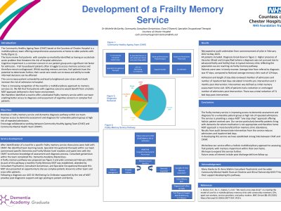 Introduction: The Community Geriatrician team based at the Countess of Chester Hospital is a multidisciplinary team offering comprehensive assessments at home to older patients with frailty. The team review frail patients identified as being at risk of hospital admission. Cognitive impairment and dementia are increasingly common concerns in our patient group and significant risk factors for admission. Frail patients often struggle to access traditional memory clinics for a variety of reasons and can therefore remain undiagnosed. They often require a more holistic approach in their home