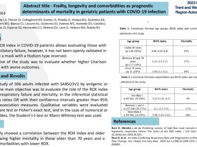 Introduction: The presence of comorbidities and longevity is associated with worse outcomes in patients with COVID-19 infection. Materials and Methods: retrospective study of 306 adults infected by SARSCOV2. The main objective was to evaluate the role of the ROX index as well as comorbidities according to the age group as predictors of respiratory failure and mortality. In the inferential statistical analysis, the odds ratios OR with their confidence intervals greater than 95% were used as association measures. Qualitative variables were evaluated using the Chi-square test or Fisher's exact