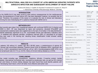Introduction: Infection caused by the SARS-CoV-2 has been found to have serious consequences for the cardiovascular system. Among these, the development of heart failure (HF) has been stipulated; however, its causality has not yet been established. Therefore, the purpose of this study is to evaluate the role of clinical and laboratory parameters in determining the risk of developing HF in patients infected with SARS-CoV-2. Methodology: 151 electronic medical records were taken from hospitalized patients with confirmed SARS-CoV-2 infection and pneumonia, from 03/11/20 to 10/02/21. HF was