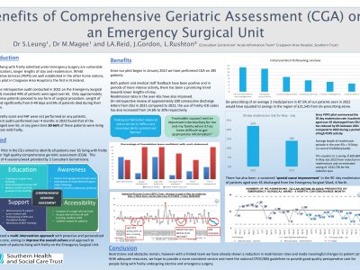Introduction; Patients living with frailty admitted under Emergency Surgery are vulnerable to complications, longer lengths of stay and readmission. Perioperative Care of the Older Person in Surgery (POPS) services are well evidenced and recommended by many national reports. Whilst they are well established in the other home nations, our POPS pilot in Craigavon Area Hospital is the first in N.Ireland. Method; Our POPS Pilot in the Emergency Surgical Unit aimed to identify all patients over 65 living with frailty and deliver high quality comprehensive geriatric assessment (CGA). This consists