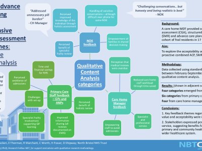 Introduction: The Enhanced Health in Care Homes Framework recognises personalised advance care planning (ACP) as a key component of optimal healthcare for care home residents. We established a multi-disciplinary care home team providing comprehensive geriatric assessment (CGA), structured medication review (SMR) and advance care planning (ACP) to a pilot cohort of frail residents in 17 care homes. We aimed to explore the acceptability and perceptions of proactive ACP alongside CGA from the perspective of resident’s next-of-kin (NOK), primary care staff and care home managers (CHMs). Methods