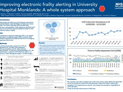 Introduction. Older people with frailty are at risk of adverse outcomes from hospital admission. Early identification of frailty at can help reduce these. The Clinical Frailty Scale (CFS) identifies frailty, is quick to perform and can be done in acute settings. We have a well-established a Frailty Assessment Unit (FAU) which supports comprehensive geriatric assessment (CGA) for older adults with frailty in hospital. We developed direct admission pathway for frail patients direct from our emergency department (ED) to FAU and we needed to ensure that CFS was performed in the ED. Methods. A
