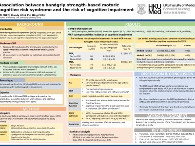 Background: Motoric cognitive risk syndrome (MCR), characterized by slow gait speed (GS) and subjective cognitive complaints, is a simple way to screen older adults at high risk of dementia. In primary care service, however, assessing GS may still be a challenge due to the short consultation time and space constraints common in general practice. Therefore, there is a need to explore alternative MCR subtypes with motor domains that can be measured conveniently. This study aimed to explore a new subtype of MCR, using low handgrip strength (HGS) as the motoric phenotype, and examined its