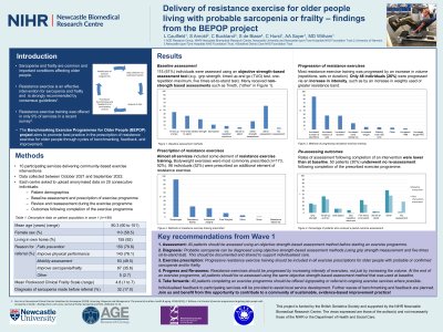 Introduction Resistance exercise is an effective intervention for older people at risk of, or living with, sarcopenia and frailty. Surveys of current UK practice in exercise prescription for these conditions found that resistance exercise was offered in only 9% of departments and was often not optimised for sarcopenia and frailty. The Benchmarking Exercise Programmes for Older People (BEPOP) project is a joint British Geriatrics Society and AGILE initiative to promote best practice in the prescription of resistance exercise for older people. Methods Using an online data collection tool, 10