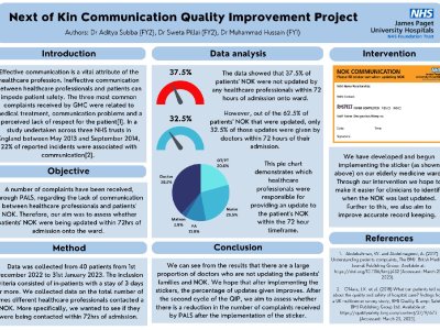 Background Effective communication is a vital attribute in the healthcare profession. Ineffective communication between healthcare professionals and patients can impede patient safety. The three most common complaints received by GMC were related to medical treatment, communication problems and perceived lack of respect for the patient 1. In a study undertaken across three NHS trusts in England between May 2013 and September 2014, 22% of the incidents reported were associated with communication 2. Inefficient record-keeping related to communication was the issue. Methods To evaluate the