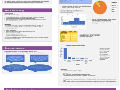 Introduction: With the anticipated rise in the annual number of dementia cases in Cardiff and the Vale of Glamorgan (C&V), improvements in dementia diagnosis rates are essential. However, barriers to accessing support still exist, precipitating delays in diagnosis and establishing appropriate interventions. This article aims to highlight potential barriers patients attending the C&V Memory Assessment Service (MAS) may face, as well as ascertain possible delays within diagnostic pathways of cognitively impaired patients. Methodology: Demographic and primary data analysis was undertaken using a