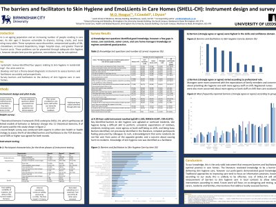 Aims: i) Develop and test a theory-based diagnostic instrument to assess barriers and facilitators accurately and prospectively; and ii) survey barriers and facilitators to the delivery of skin hygiene care in care homes. Background: There is an ageing population and an increasing number of people residing in care homes. As skin ages it become vulnerable to dryness, itching, cracks, and tears. These are experienced by many older people and cause discomfort, compromised quality of life, skin breakdown, increased dependency, longer hospital stays, and greater financial and human costs. These