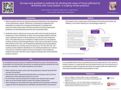Background: Dementia with Lewy bodies (DLB) is one of the most common degenerative dementias, and it is associated not only with cognitive symptoms, but motor, neuropsychiatric, sleep and autonomic symptoms. There is increasing emphasis on the involvement of patients and their representatives in dementia research, but little is known about the extent and nature of surveys and qualitative research methods capturing the views of those affected by DLB. The objective of the scoping review is to determine the extent and nature of published literature that uses surveys and qualitative methods to