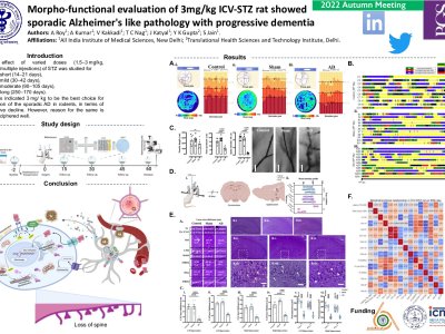 Intracerebroventricular streptozotocin (ICV-STZ) injection is among the best animal models to simulate sporadic Alzheimer’s disease (sAD). Abnormality in brain insulin signaling, neurodegeneration, neuroinflammation, cholinergic damage, mitochondrial dysfunction, genetic abnormality, respiratory problem, oxidative stress, gliosis, sleep disturbances are associated with cognitive abnormalities seen in ICV-STZ injected rats. Available experimental evidence has used varying doses of STZ (
