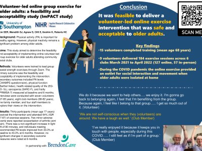 Introduction The health benefits of physical activity for older people are well recognised and include reduction in falls, improvement in frailty status and physical function. Nonetheless, physical inactivity remains a significant problem among older adults. This study aimed to determine the feasibility and acceptability of implementing online volunteer-led group exercise for community-dwelling older adults. Methods This pre-post mixed methods study was conducted among older adults attending community social clubs. Eligible participants were aged ≥ 65 years, able to walk independently, and