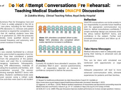The Recommended Summary Plan for Emergency Care and Treatment (ReSPECT) form is widely adopted to document advanced care plans, including Do Not Attempt Resuscitation (DNACPR) decisions. Communication between clinicians and patients, or next of kin is required for completion. It is widely documented UK medical students have little exposure to these experiences, including being asked to leave whilst they are occurring. During the COVID19 pandemic, Foundation Year 1 (FY1) doctors led discussions with increased frequency and autonomy, with no documented concurrent training. We present a novel