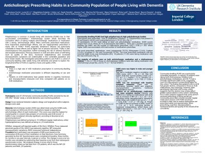 Introduction: Many commonly prescribed medications have inadvertent anticholinergic effects. People living with Dementia (PLWD) are vulnerable to these effects and at risk of adverse outcomes, the risk being higher with greater anticholinergic exposure. We investigated prescribing patterns and anticholinergic burden (ACB) in a cohort of community-dwelling PLWD and explored the effect of ACB on cognition, neuropsychiatric symptoms, quality of life (QoL), and functional independence. Method: The medication and demographic information for 87 (39 female) community-dwelling PLWD were obtained from