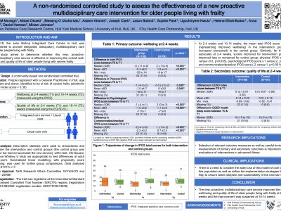 Introduction Integrated care potentially improves coordination and health outcomes for older people with frailty. We aimed to assess the effectiveness of a new, proactive, multidisciplinary care service in improving the well-being and quality of life of older people with frailty. Methods A community-based non-randomised controlled trial. Participants (≥65 years, electronic Frailty Index ≥0.36) received either the new integrated care service plus usual care, or usual care alone. Data collection was at 3-time points: baseline, 2-4 weeks, and 10-14 weeks; the primary outcome was patient well