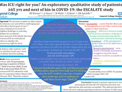 Introduction The decision to admit an older patient to the intensive care unit (ICU) should reflect shared goals of care. Resource limitations during the Covid-19 pandemic highlighted challenges in selecting candidates for escalation. Patients and next of kin (NoK) who have experienced ICU are well-placed to reflect on whether the admission was right for them. Objective: To explore older patients’ (65 years) and their loved ones’ views on escalation decision making. Methods Qualitative study involving semi-structured interviews with patients, NoK of survivors and NoK of deceased who