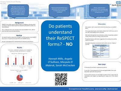 Background Hospital based Quality Improvement Project focusing on adapting language used on Recommended Summary Plan for Emergency Treatment and Care (ReSPECT) forms to improve patient understanding. Introduction ReSPECT forms have been used to document patient wishes and appropriate escalation of treatment in our hospital since 2019. There continues to be a lack of understanding of phrases used amongst both patients and healthcare professionals; the hospital receives regular complaints. This project explored patients’ perceptions of language used and their thoughts on the ReSPECT discussion