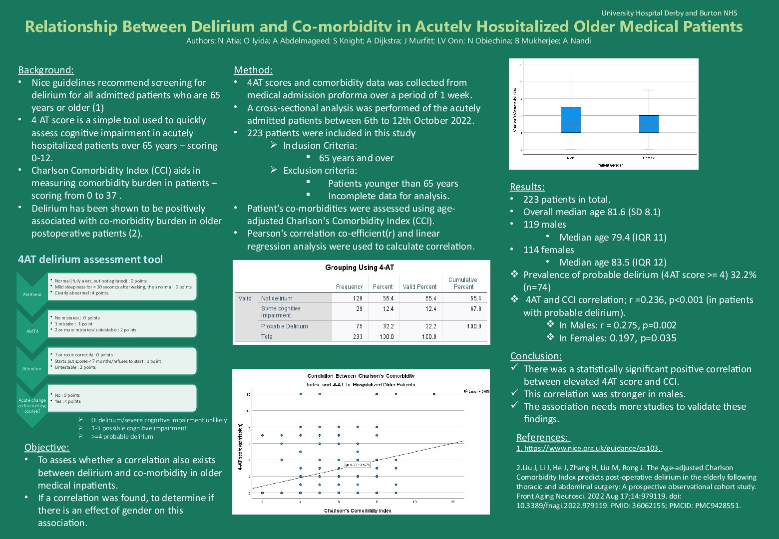 - The aims of the study is to assess the correlation between delirium and co-morbidity in older medical inpatients. It also aim to determine the effect of gender on this association.