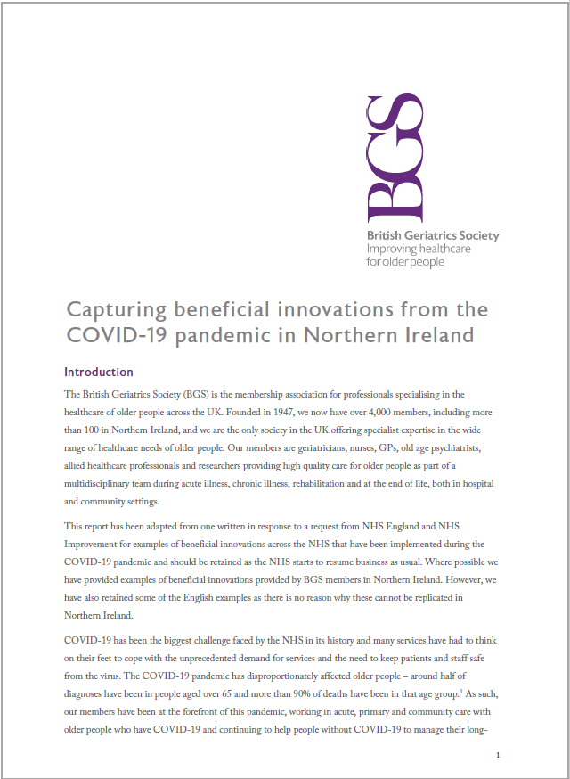 This report has been adapted from one written in response to a request from NHS England and NHS Improvement for examples of beneficial innovations across the NHS that have been implemented during the COVID-19 pandemic and should be retained as the NHS starts to resume business as usual. Where possible we have provided examples of beneficial innovations provided by BGS members in Northern Ireland. However, we have also retained some of the examples from England as there is no reason why these cannot be replicated in Northern Ireland.