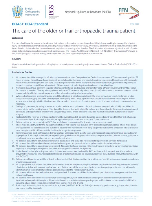 BOAST: The care of the older or frail orthopaedic trauma patient