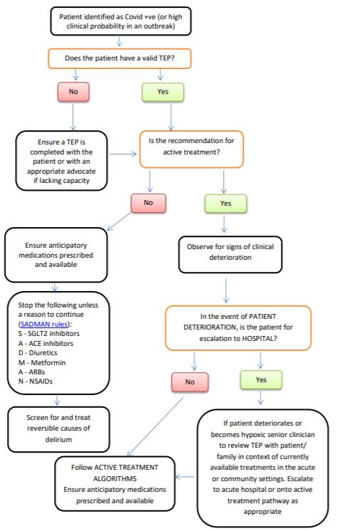 This page brings together guidance and practical advice for the management of older adults with COVID-19 in the community, including drug treatment and examples of standard operating procedures (SOPs).