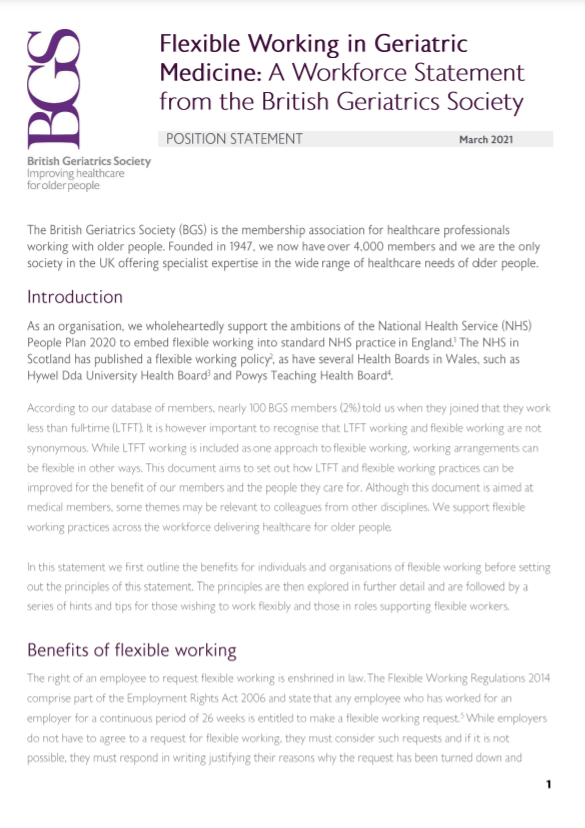 Flexible Working in Geriatric Medicine: A Workforce Statement from the British Geriatrics Society