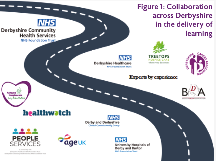 Collaboration is key to the learning pathways as experts from practice across Derbyshire come together to create engaging and interactive sessions that will motivate learners to take knowledge back to practice. Experts range from clinicians and leaders within services, to Consultants and experts from other local NHS Trusts, public sector services, hospices, charitable services, voluntary services (see Figure 1, below).