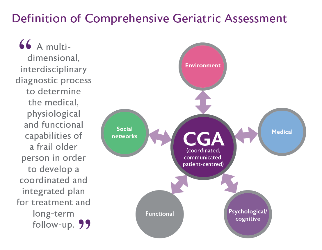 ‘Multidimensional’ - highlights the importance of taking a holistic overview. In this cohort of patients, it is not sufficient to focus simply on one domain or the main problem of the patient. It is the integrated assessment of all of the domains of CGA that allows an accurate problem list to be generated.