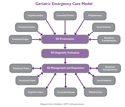 A transdisciplinary philosophy of geriatric emergency medicine requires coordination of services beginning in the pre-hospital setting and extending through the emergency department to inpatient services and outpatient referrals. Access to baseline functional and cognitive status, co-morbid disease burden, current prescriptions and recent changes to medications, social support mechanisms, and advanced directives permit the emergency department to distinguish acute from chronic illness/injury, while aligning the diagnostic and therapeutic approach with patient’s goals of care.