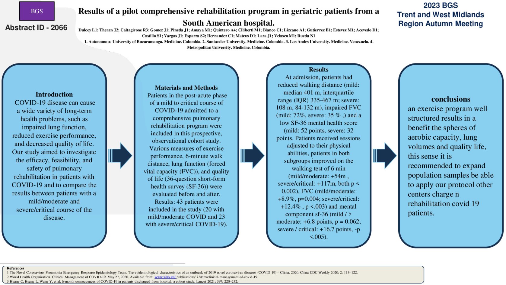 At admission, patients had reduced walking distance (mild: median 401 m, interquartile range (IQR) 335-467 m; severe: 108 m, 84-132 m), impaired FVC (mild: 72%, severe: 35%,) and a low SF-36 mental health score (mild: 52 points, severe: 32 points. Patients received sessions adjusted to their physical abilities, patients in both subgroups improved on the walking test of 6 min (mild/moderate: +54m, severe/critical: +117m, both p < 0.002), FVC (mild/moderate: +8.9%, p=0.004; severe/critical: +12.4% , p <.003) and mental component sf-36 (mild /> moderate: +6.8 points, p = 0.062; severe / critical: +16.7 points, -p <.005). conclusions: an exercise program well structured results in a benefit the spheres of aerobic capacity, lung volumes and quality life, this sense it is recommended to expand population samples be able apply our protocol other centers charge n rehabilitation covid 19 patients.