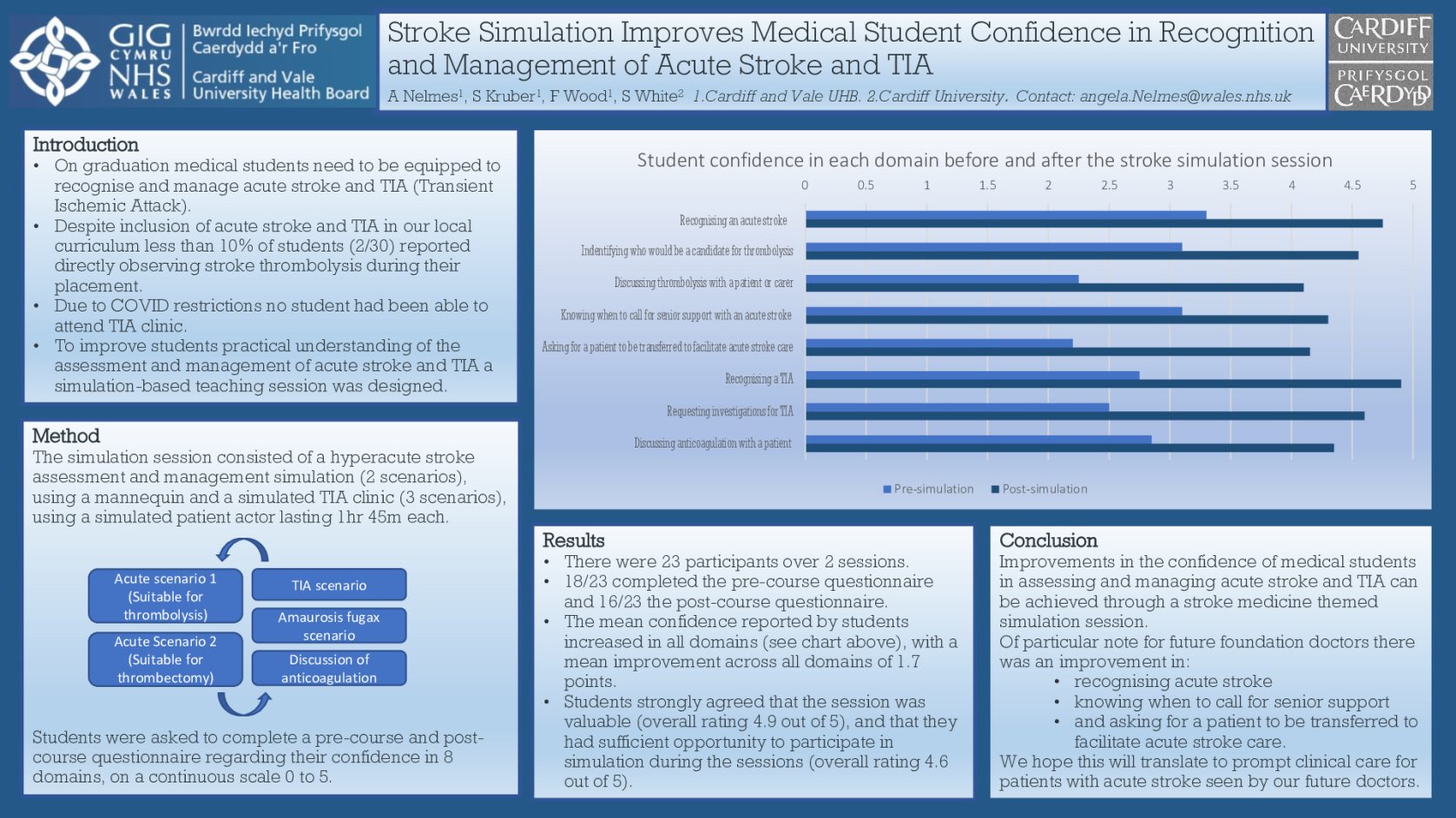 On graduation medical students need to be equipped to recognise and manage acute stroke and TIA (Transient Ischemic Attack). Despite inclusion of acute stroke and TIA in our local curriculum less than 10% of students (2/30) reported directly observing stroke thrombolysis during their placement. Due to COVID restrictions no student had been able to attend TIA clinic. To improve students practical understanding of the assessment and management of acute stroke and TIA a simulation-based teaching session was designed.