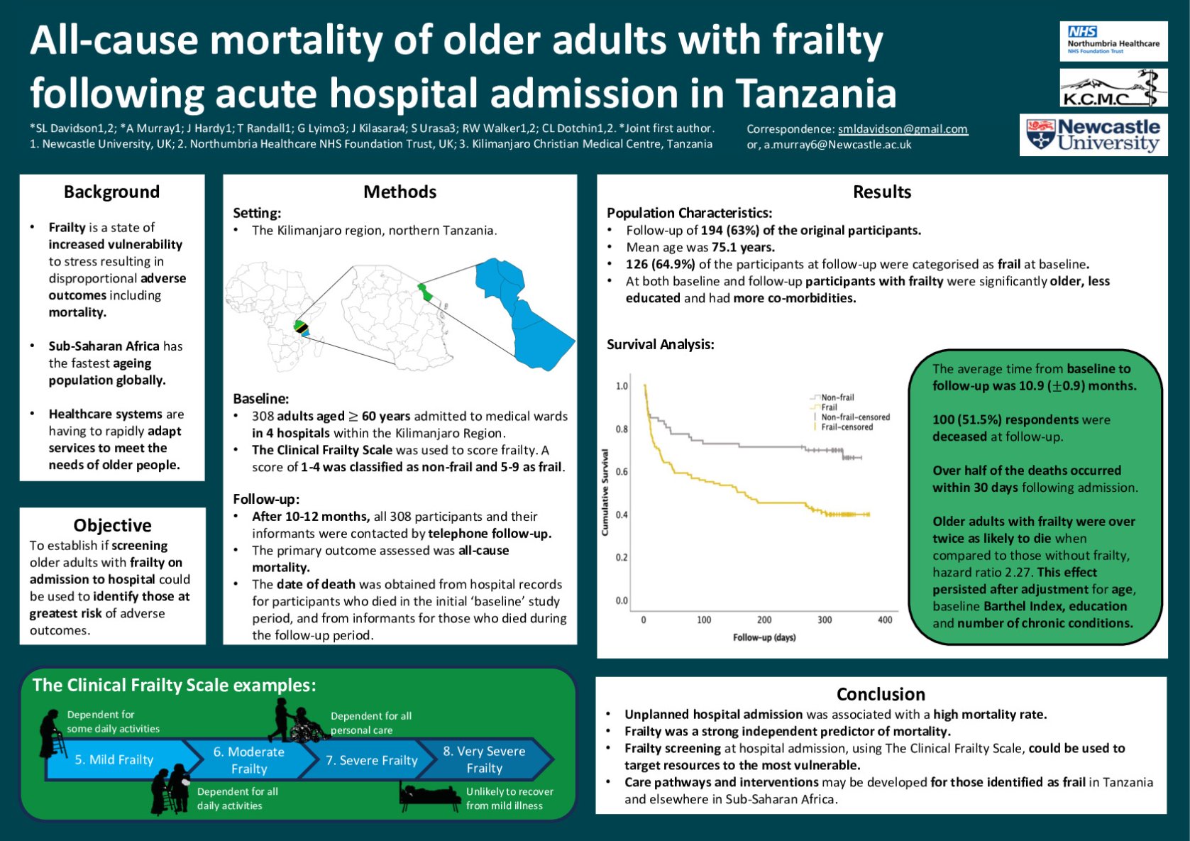 Conclusion: For older people living in Tanzania, unplanned admission to hospital is associated with high mortality and frailty is a strong independent predicator. In accurately identifying which older people are at the greatest risk, frailty screening using the CFS could provide a starting point for the development of targeted care pathways and interventions.